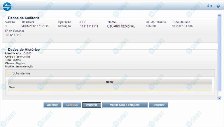 UG do Usuário - Unidade Gestora do usuário que realizou a operação.