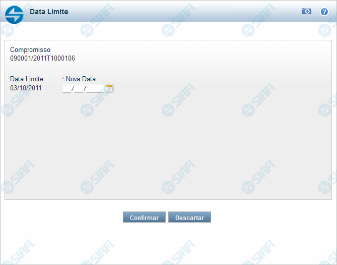 Quando você solicita a realização de um compromisso que exija a alteração da data limite, o sistema apresenta esse formulário para que você informe uma nova data.
