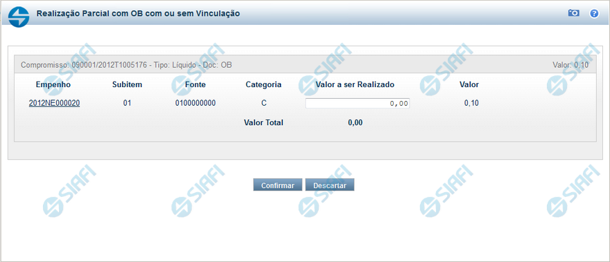 Valor a ser Realizado - Informe a p arcela do valor monetário do compromisso a ser realizado.