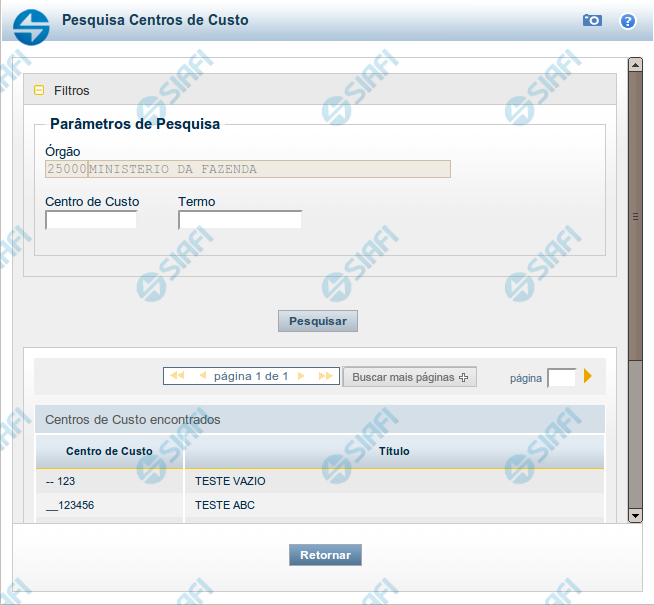 Pesquisa Centros de Custo