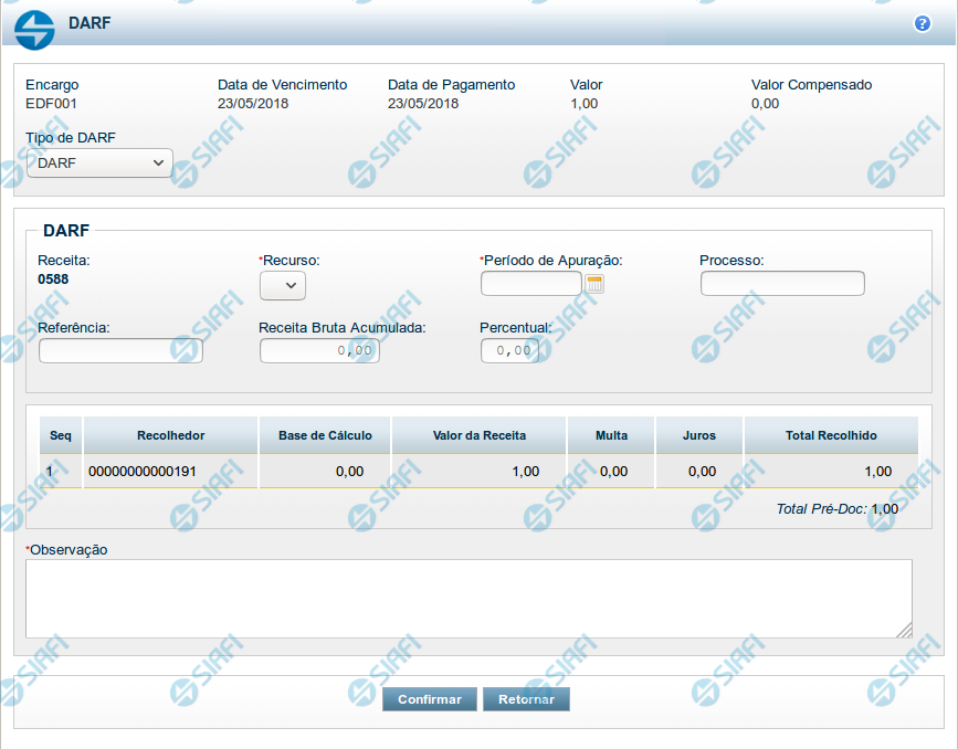Detalhes do Tipo de Pré-doc DARF