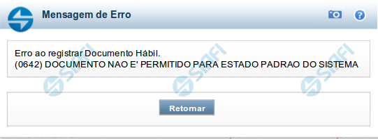 de erro gerada no momento da tentativa de contabilização da NS gerada