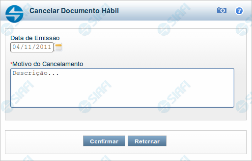 Data de Emissão - data de emissão da NS (Nota de Sistema), ou seja, da contabilização do cancelamento do Documento Hábil atual.