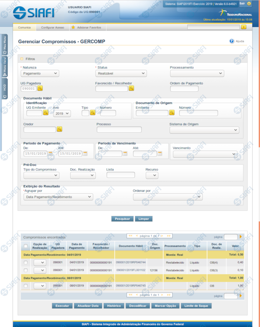 - se o favorecido for uma UG, preencha com 6 dígitos numéricos;