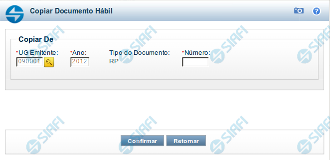 Preencha os campos, para que o sistema localize o Documento Hábil do qual você deseja copiar as informações, e clique na opção Confirmar.