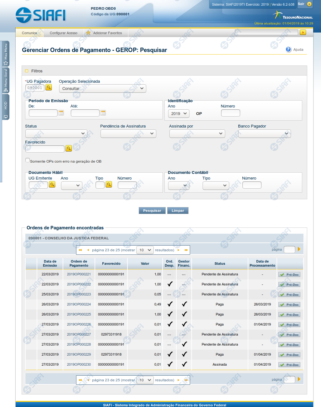 GEROP - Gerenciar Ordens de Pagamento