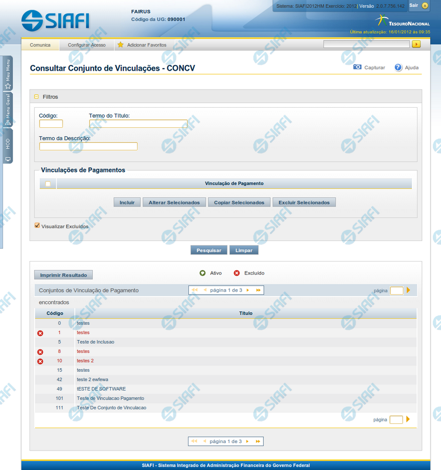 Conjuntos de Vinculações de Pagamento encontrados - Tabela