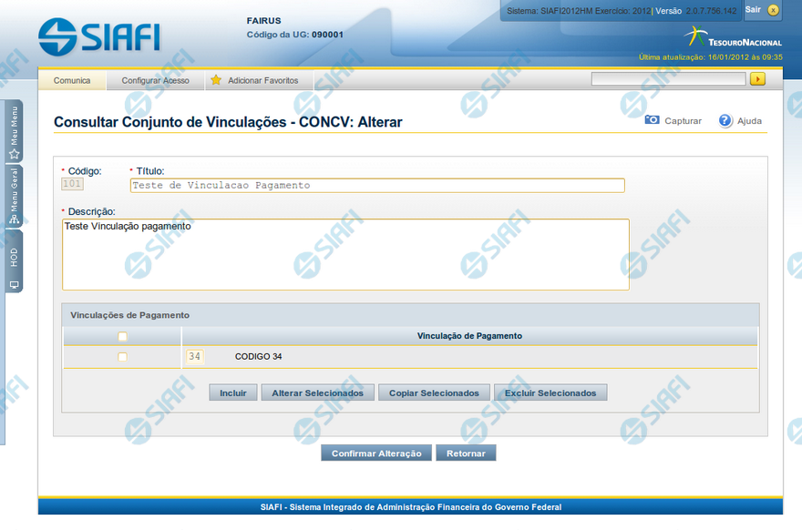 presentes nos Conjuntos de Vinculações de Pagamento sendo alterada.
