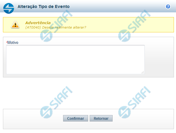 Neste formulário você informa o motivo da Alteração de um registro. O preenchimento do motivo da alteração é obrigatório para que as alterações realizadas sejam gravadas .