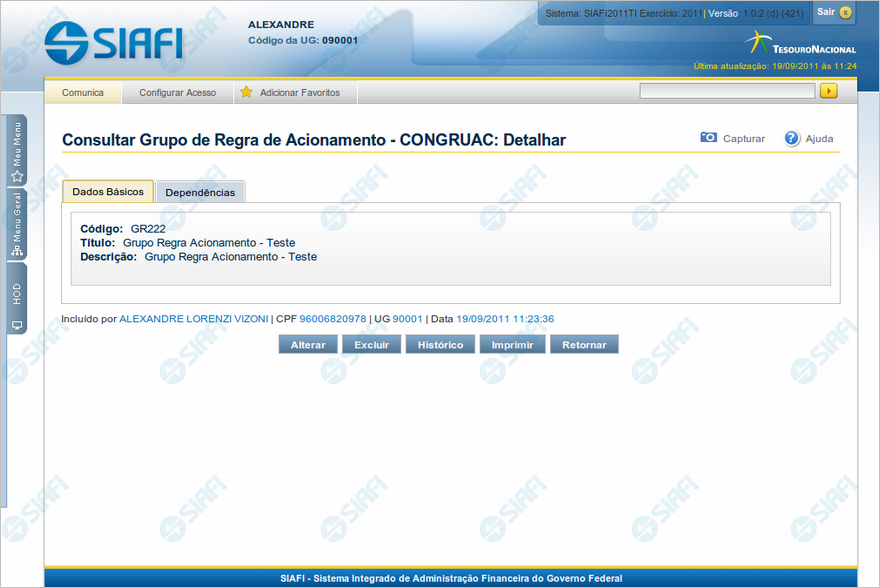 Detalhar Grupo de Regras de Acionamento - Aba Dados Básicos