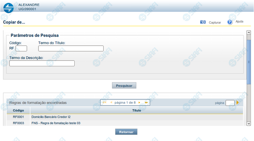 parâmetro, clique no botão "Pesquisar" e, em seguida, clique