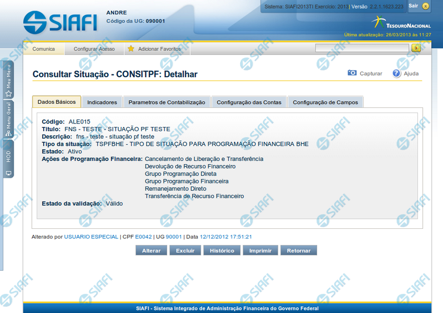 Estado da Validação - Exibe o estado da validação da Situação de Programação Financeira, podendo ser “Válido”, “Inválido” e “Pendente de Validação”.