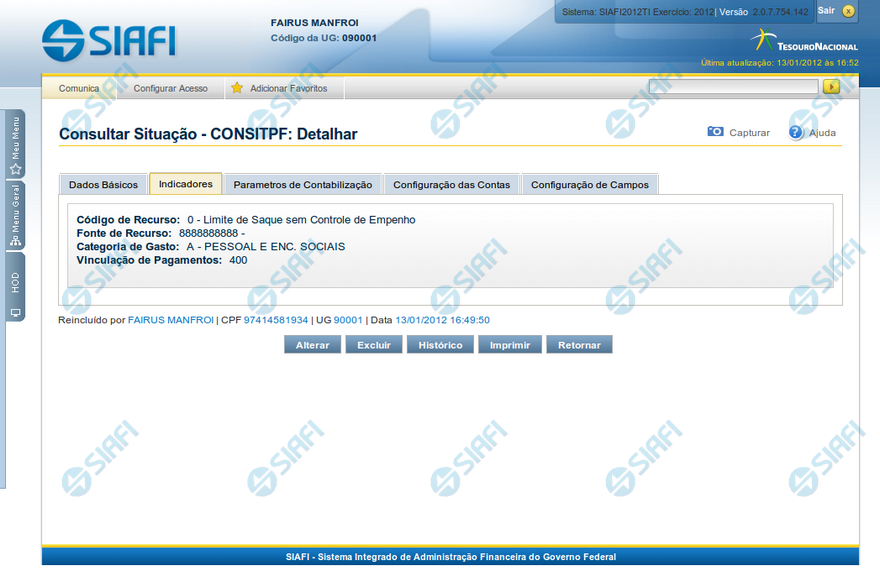 em detalhe um registro da tabela "Situação PF" e ele possui quatro