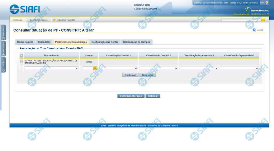 Alterar Situação de PF - Aba Parâmetros de Contabilização