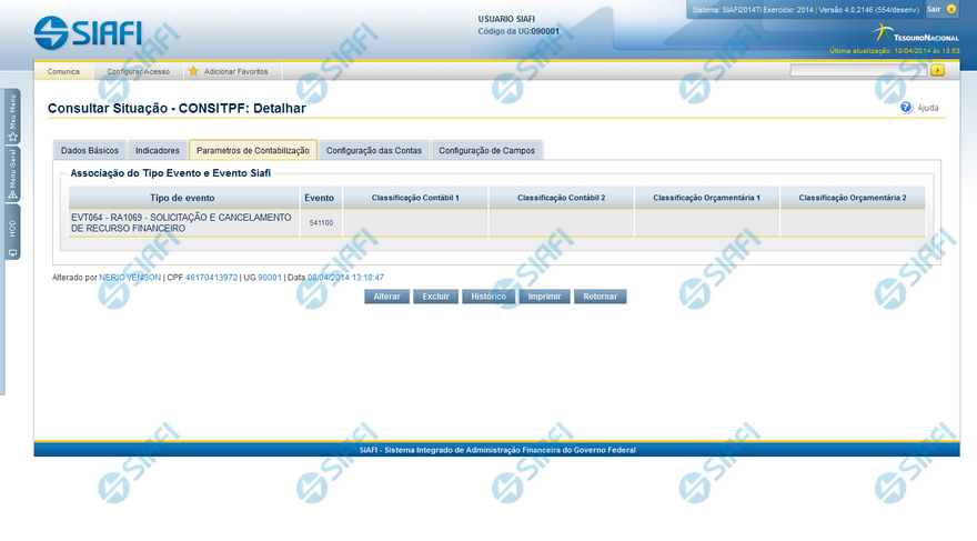 Evento - Evento do SIAFI associado a um Tipo de Evento, por meio dessa situação de PF.