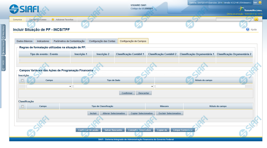 Incluir/Alterar Situação de PF - Aba Configuração de Campos