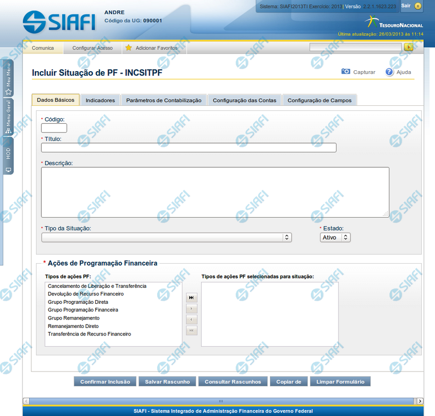 Incluir Situação de PF - Aba Dados Básicos