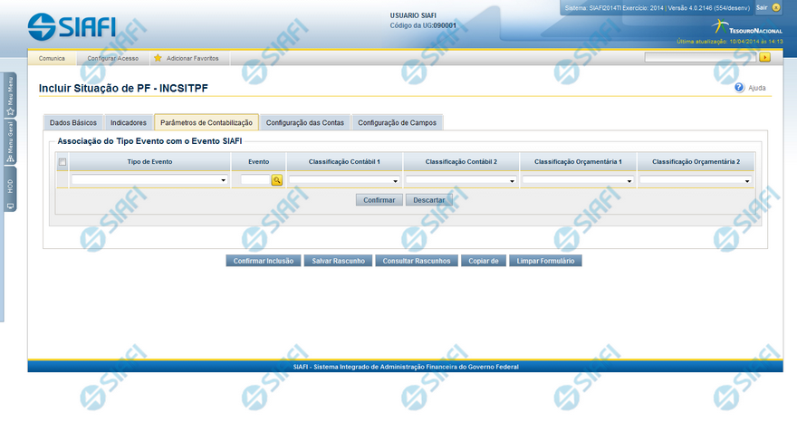 Incluir Situação de PF - Aba Parâmetros de Contabilização