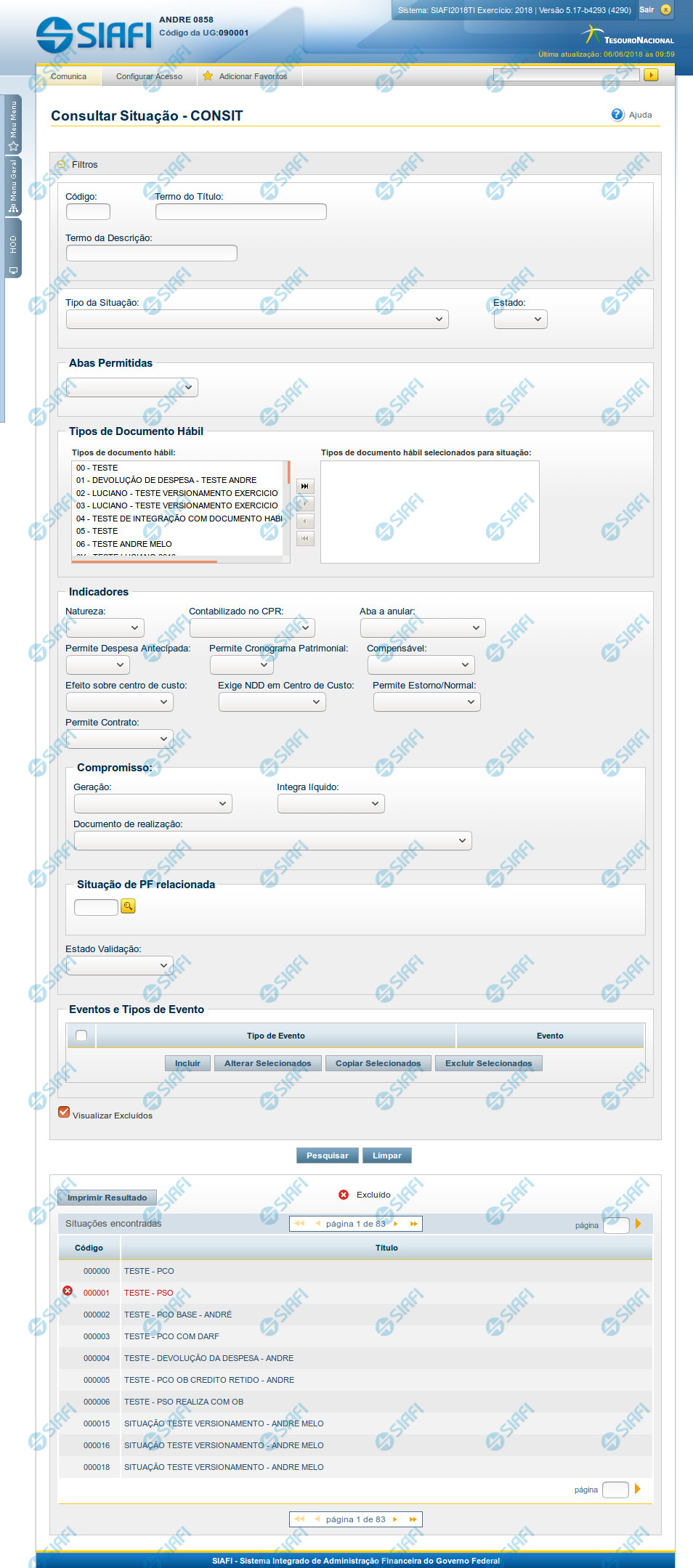O resultado da consulta é uma lista de Situações. Clique em um campo dessa lista para visualizar as informações completas do registro correspondente.