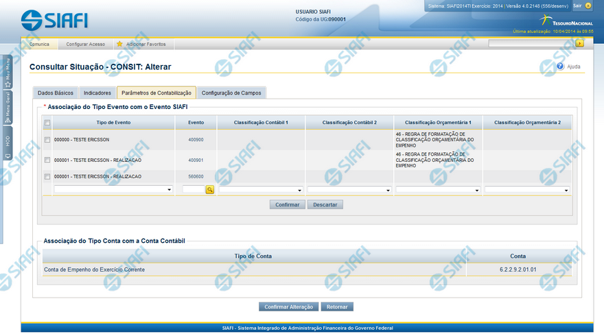 Conta - Conta Contábil associada a um Tipo de Evento, por meio dessa situação.