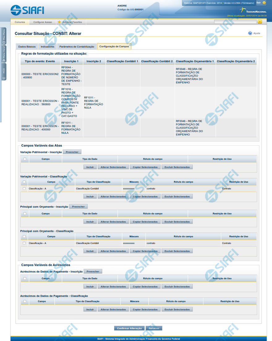 Alterar Situação - Aba Configuração de Campos