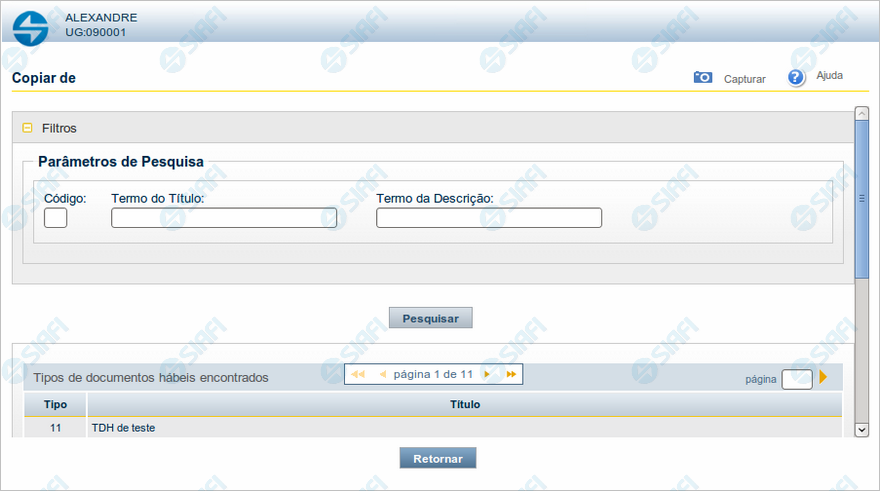 parâmetro, clique no botão "Pesquisar" e, em seguida, clique