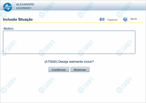 Motivo - Informe o motivo da inclusão do registro.