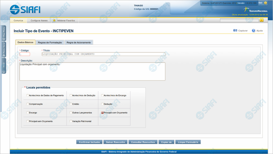 INCTIPEVEN - Incluir Tipo de Evento - Aba Dados Básicos