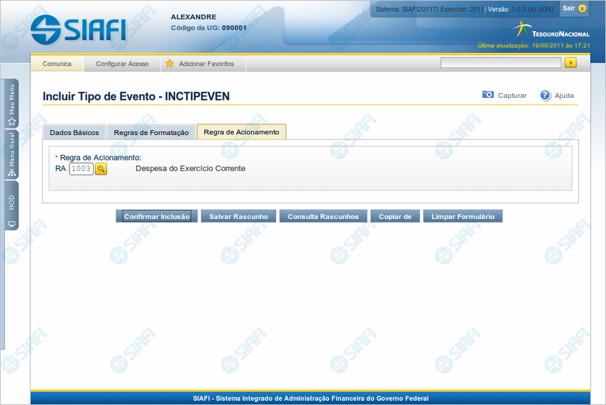 Incluir Tipo de Evento - Aba Regra de Acionamento