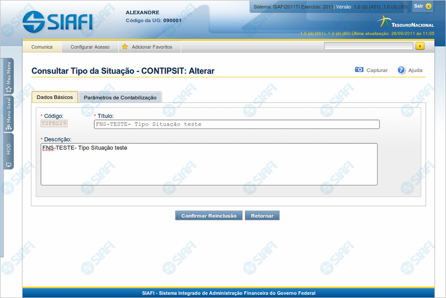 Reincluir Tipo de Situação - Aba Dados Básicos