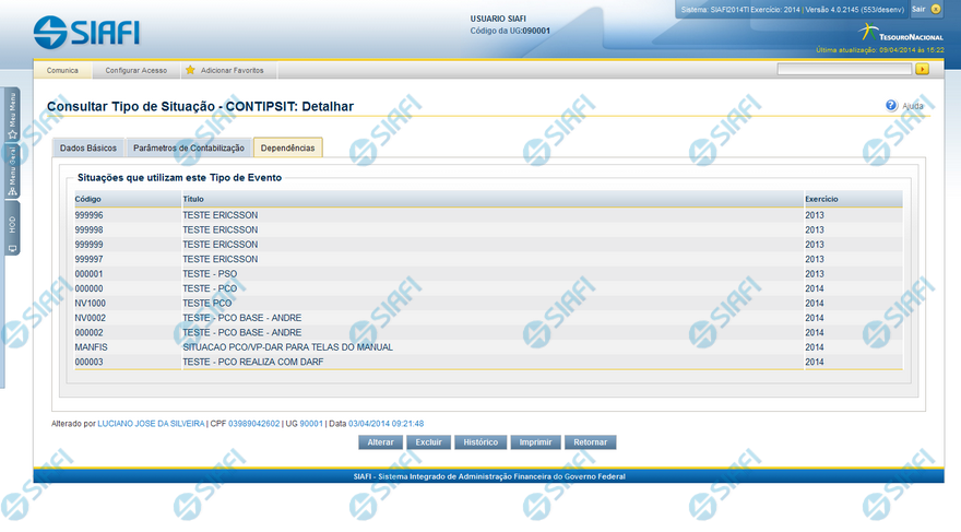 Situações que utilizam este Tipo de Situação - Lista contendo o Código, Título e o Exercício das Situações que utilizam este Tipo de Situação.