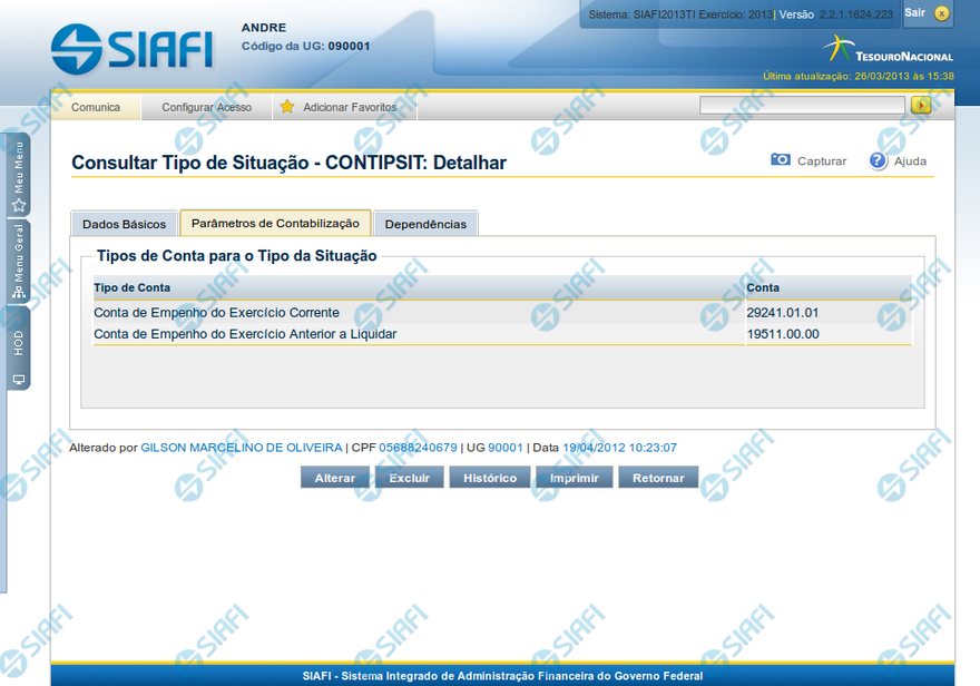 Detalhar Tipo de Situação - Aba Parâmetros de Contabilização
