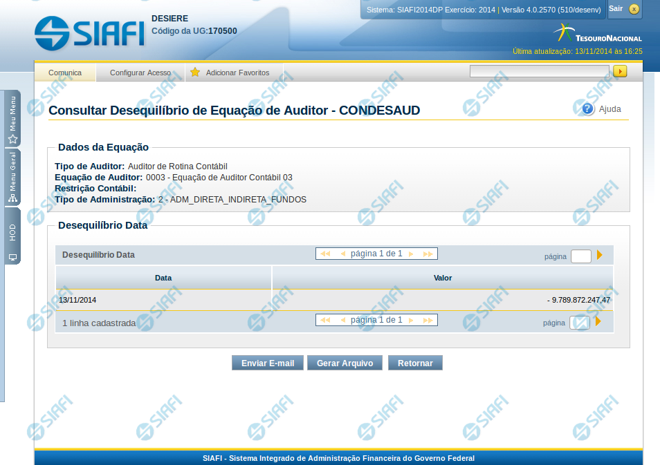 Gerar Arquivo – clique neste botão para gerar um arquivo com o resultado do desequilíbrio por data.
