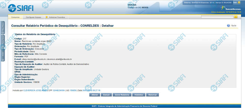 Unidade Gestora – indica a(s) unidade(s) gestora(es) considerada(s) na geração do relatório de desequilíbrio selecionado.