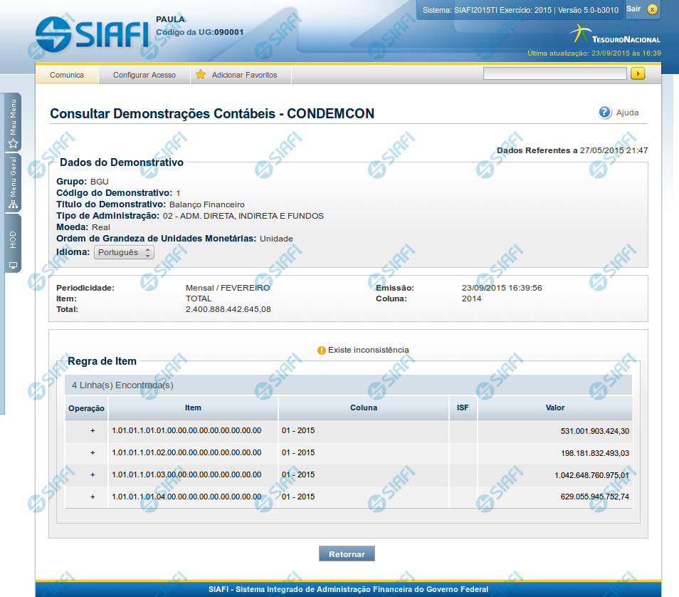 Moeda – indica a moeda escolhida para visualização dos valores do demonstrativo. Pode ser Real e Moeda de origem da UG.