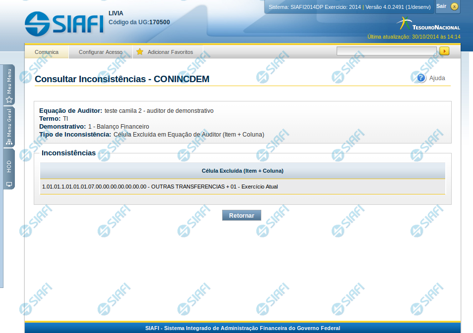 Retornar – clique neste botão caso deseje retornar para a tela de resultado da consulta de inconsistências do demonstrativo.