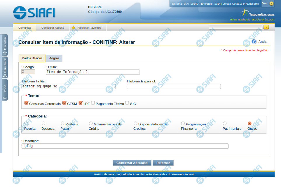 - LRF – selecione este valor para que o item de informação seja associado ao tema LRF