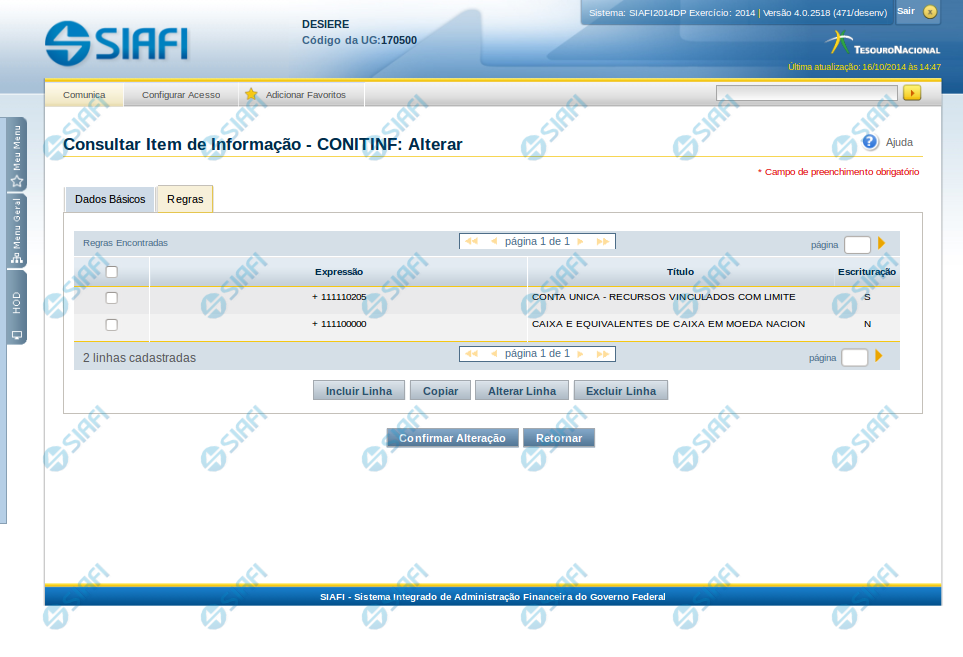Alterar Item de Informação – Aba Regras