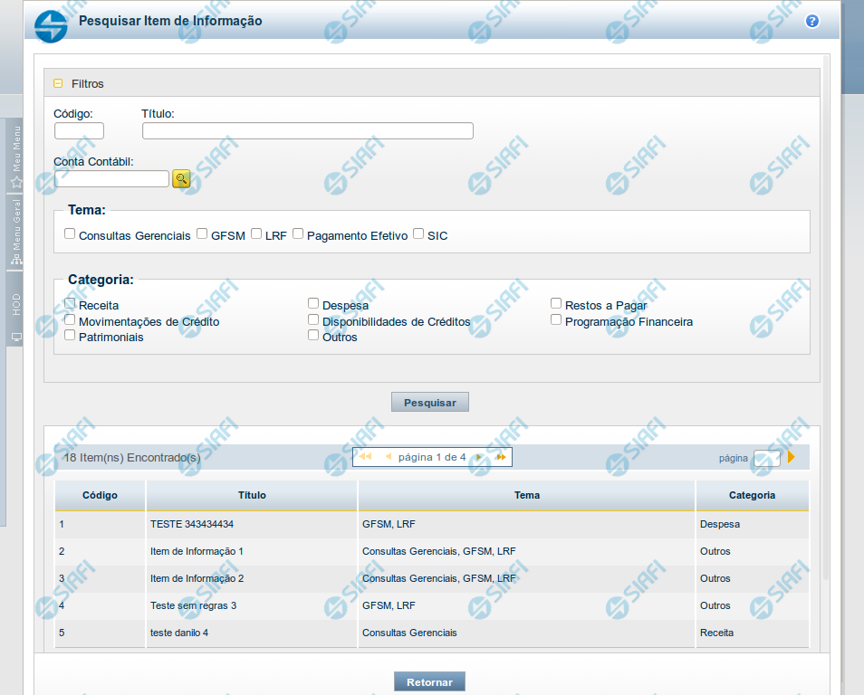 - LRF - o sistema localizará os itens de informação associados ao tema LRF