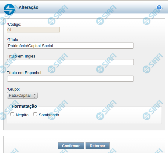 Grupo – indique neste campo o grupo da coluna, entre as possíveis: Patr./Capital, Reservas e Resultado.