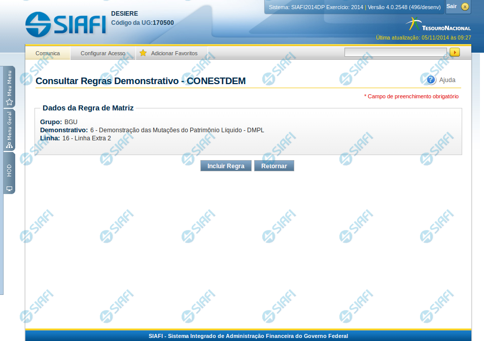 Demonstrativo – indica o código e o nome do demonstrativo da célula, linha ou coluna selecionada para inclusão da nova regra