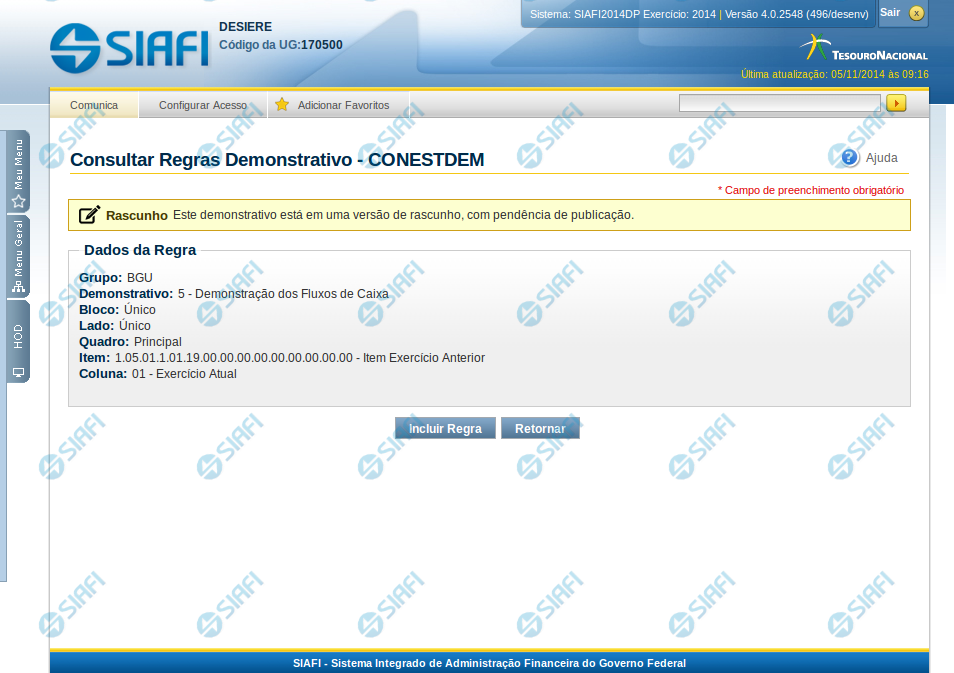 Demonstrativo - indica o código e o nome do demonstrativo da célula ou coluna selecionada para inclusão da nova regra
