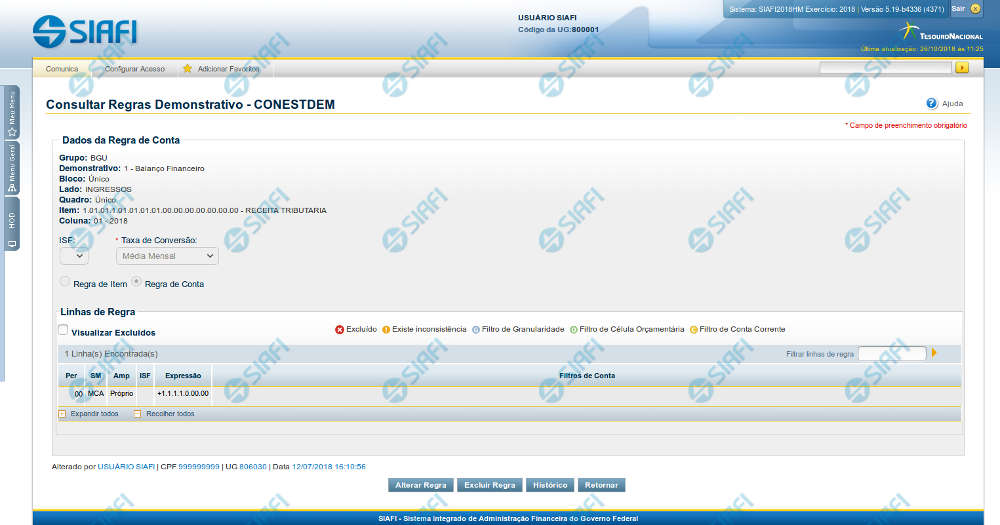 Retornar – clique neste botão para retornar para a lista com todas as regras do demonstrativo.