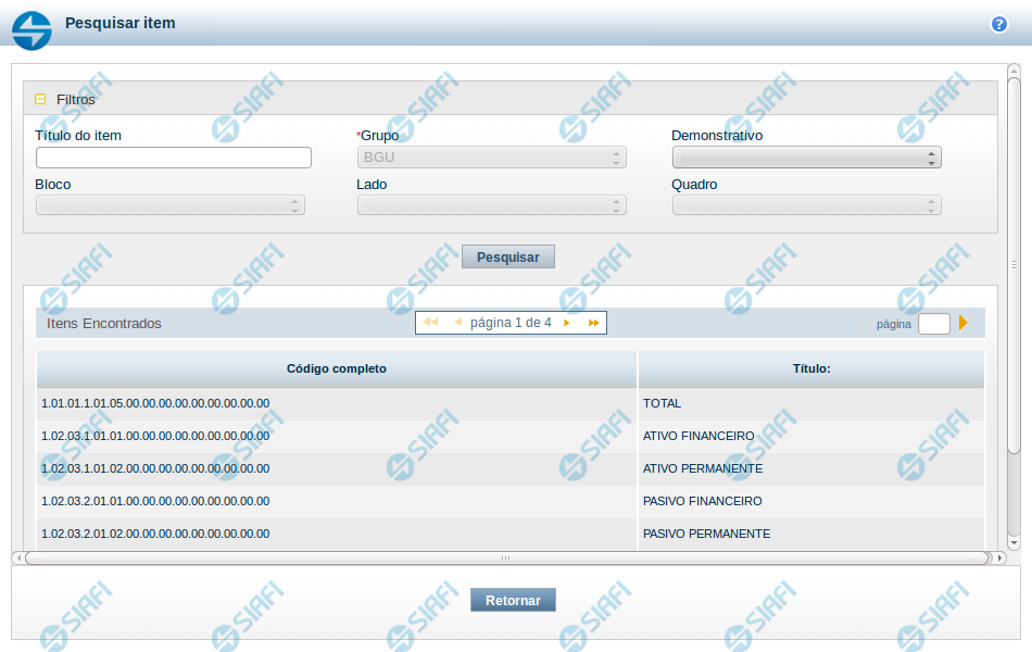 Pesquisar – clique neste botão para efetuar a pesquisa de itens considerando os filtros informados.