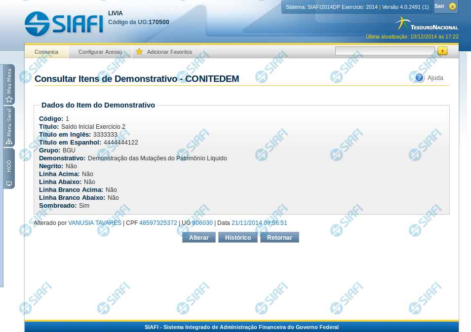 Histórico – clique neste botão se desejar visualizar o histórico de edição do item de demonstrativo.