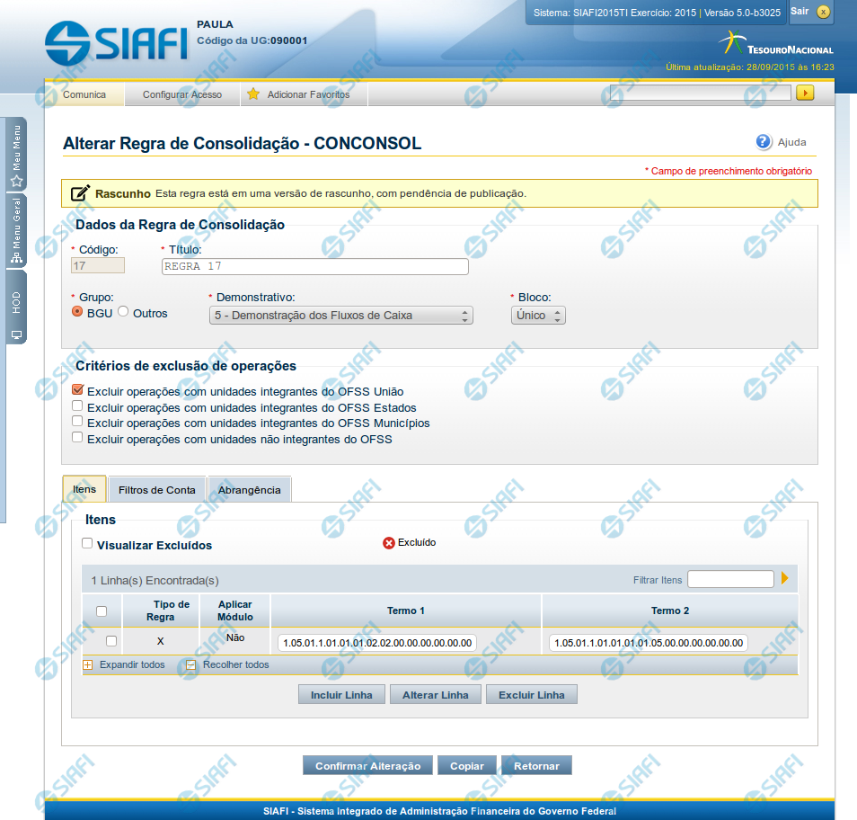 Alterar Regra de Consolidação (Aba: Itens)