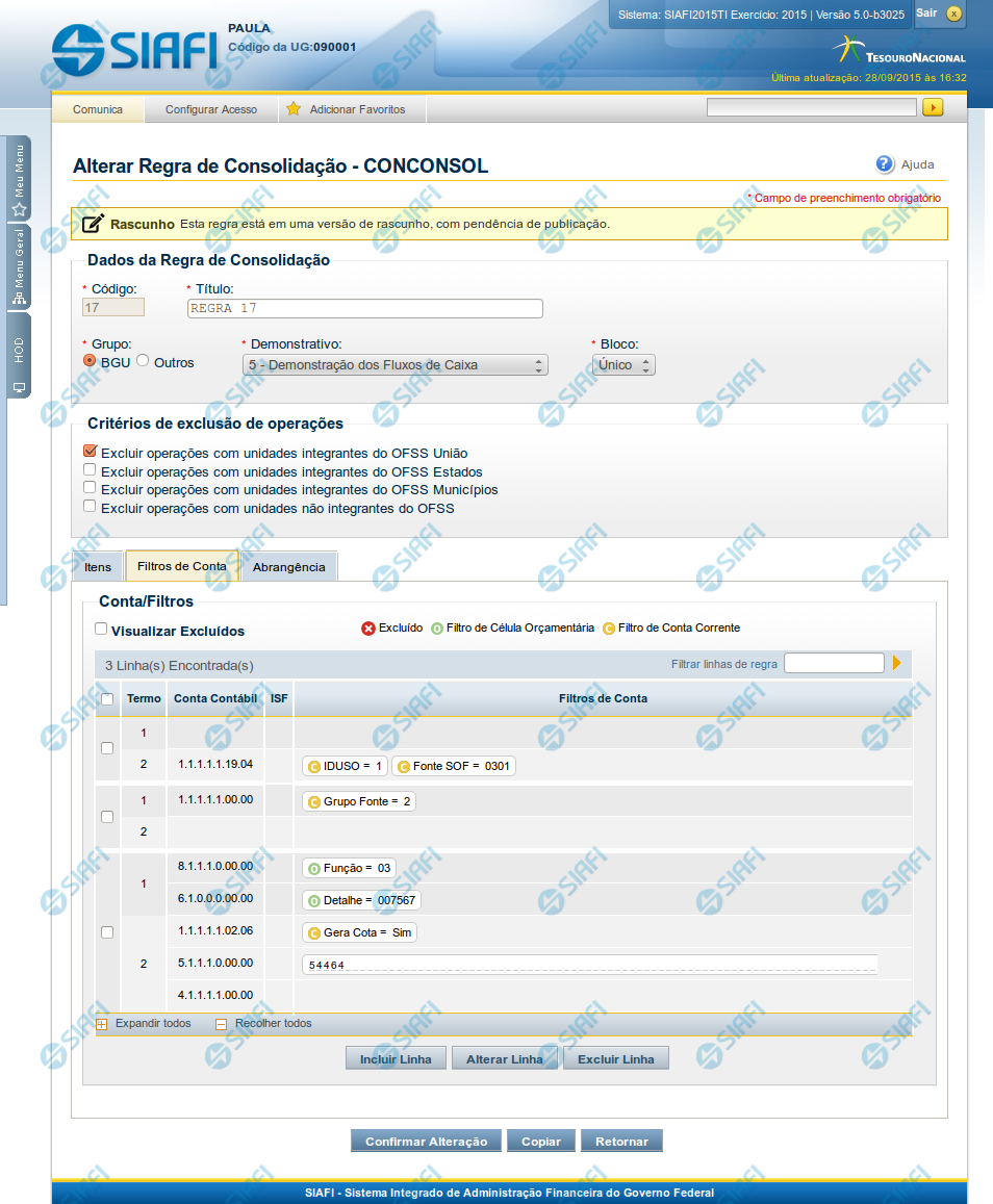 Alterar Regra de Consolidação - Aba: Filtros de Conta
