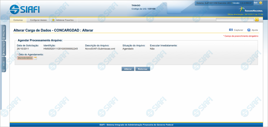 Agendamento - Informe uma nova data para o processamento da Carga de