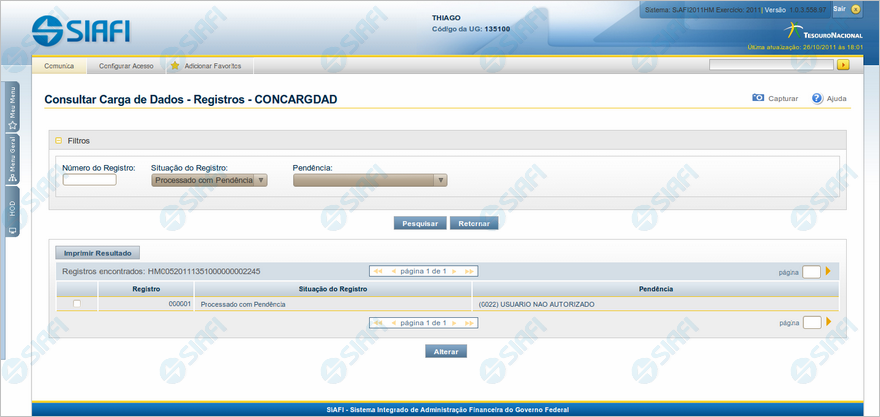 Registro - Situação do registro da Carga de Dados. Pode ser uma