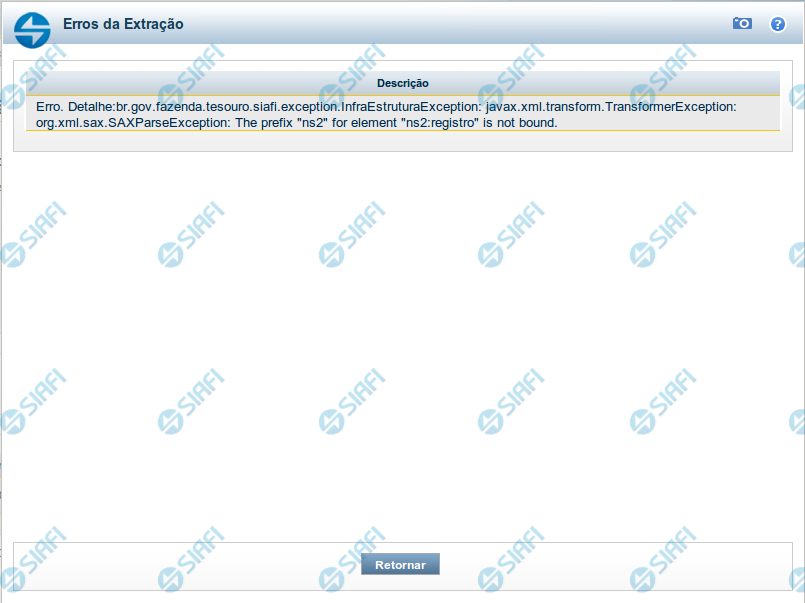 Retornar - Clique nesse botão para voltar ao detalhamento da Solicitação de Extração de Dados.